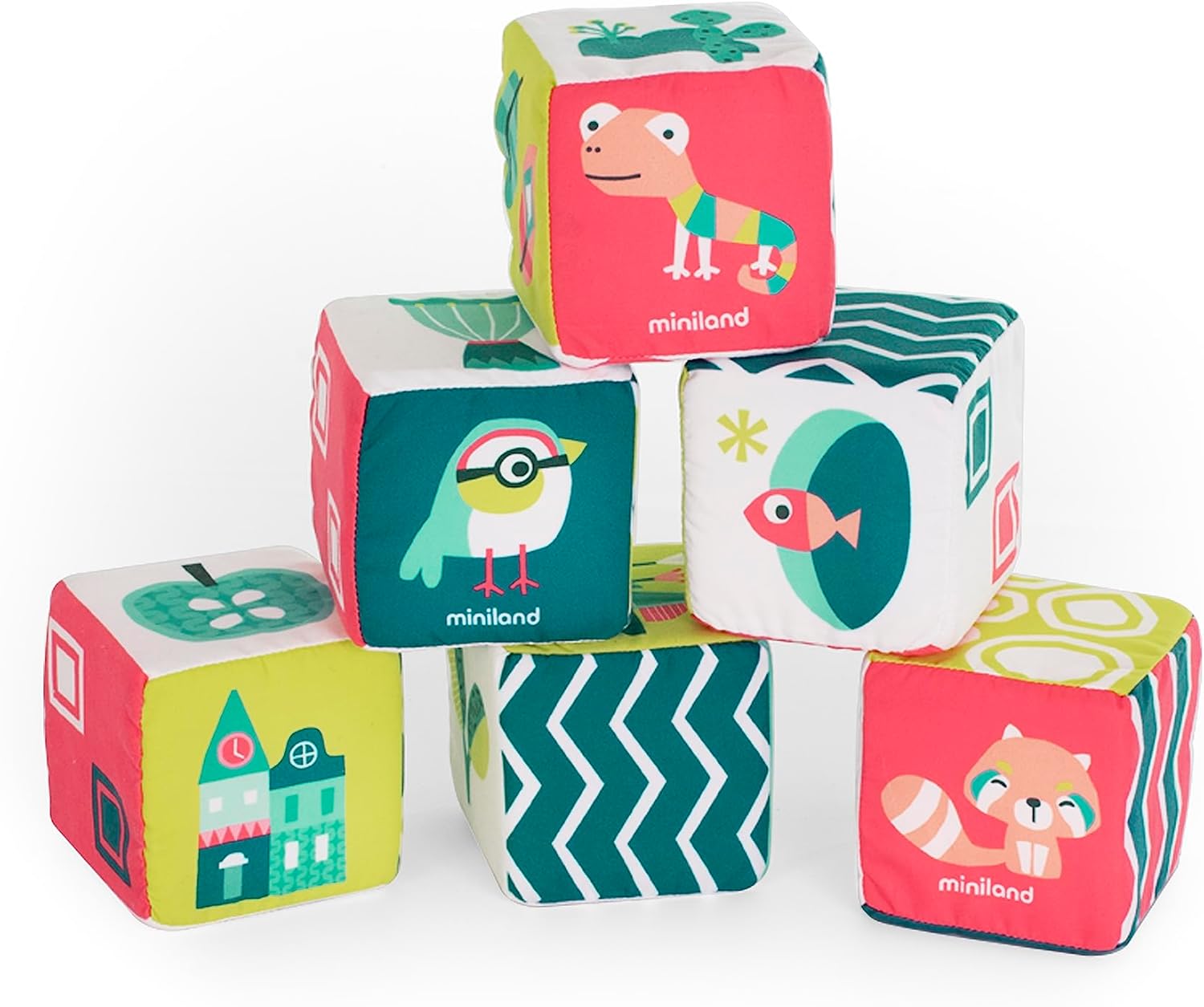 Ove kockice imaju veliku veličinu, kontrastne boje i mekanu teksturu, što omogućuje bebama da ih lako pronađu i drže u rukama. Kontrastni uzorci i vizualno stimulirajuće boje pomažu bebama da prate kockice očima i traže ih tijekom igre, razlikujući ih od drugih igračaka.