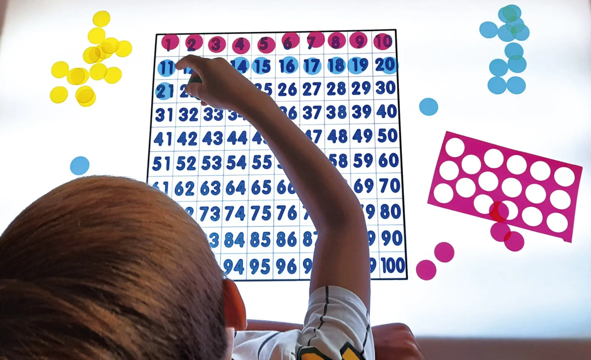 Odlična ploča do 100 za igru s brojevima na svjetlosnom stolu. · Uključuje 66 žetona u 4 prozirne boje.