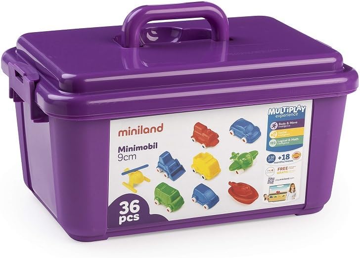 Set uključuje višekratne kontejnere za jednostavno spremanje i organizaciju, a sva vozila su dio klasične kolekcije Miniland mini vozila.